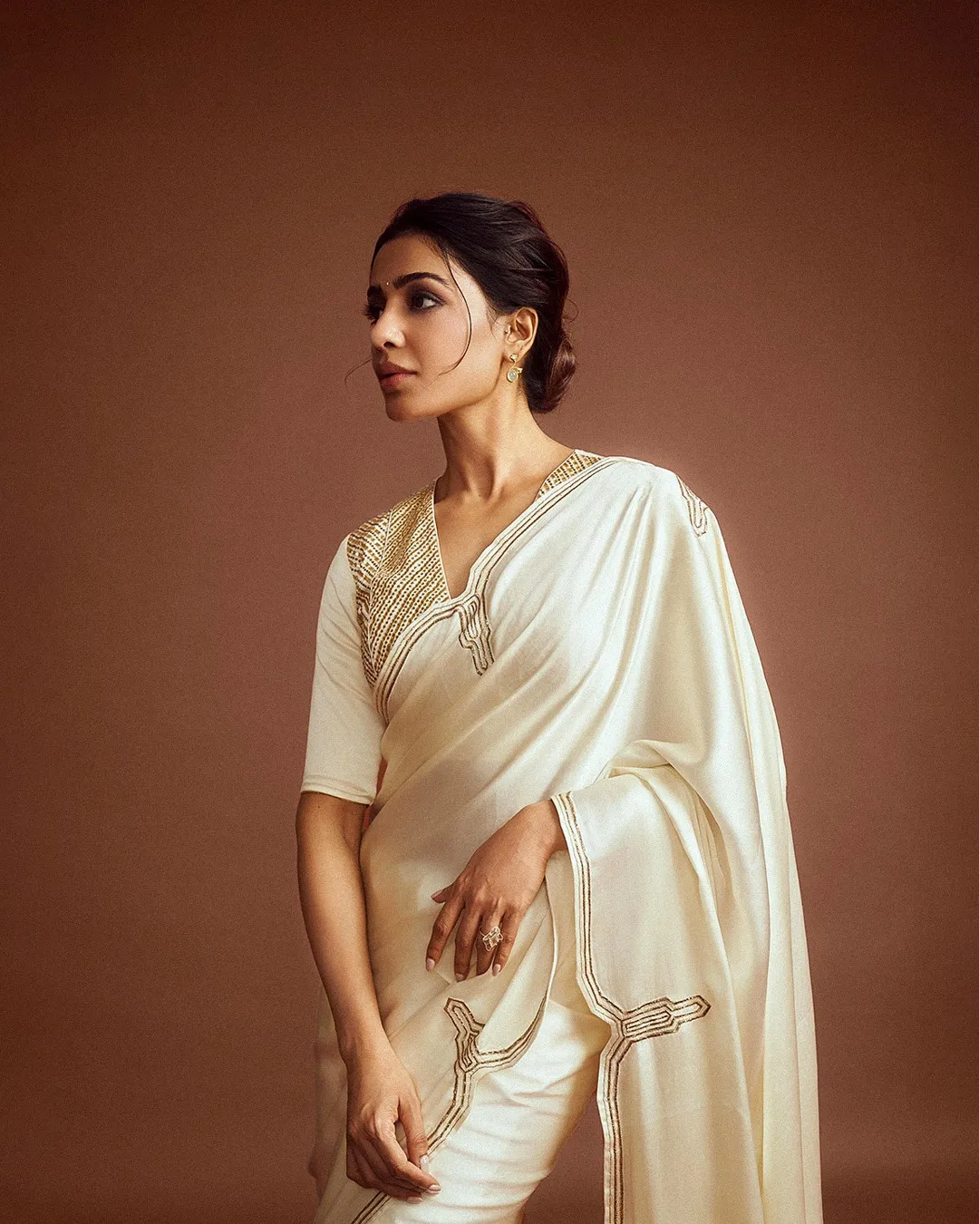 Samantha Ruth Prabhu’s ivory sari draws from the Art Deco movement